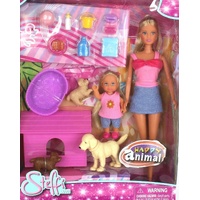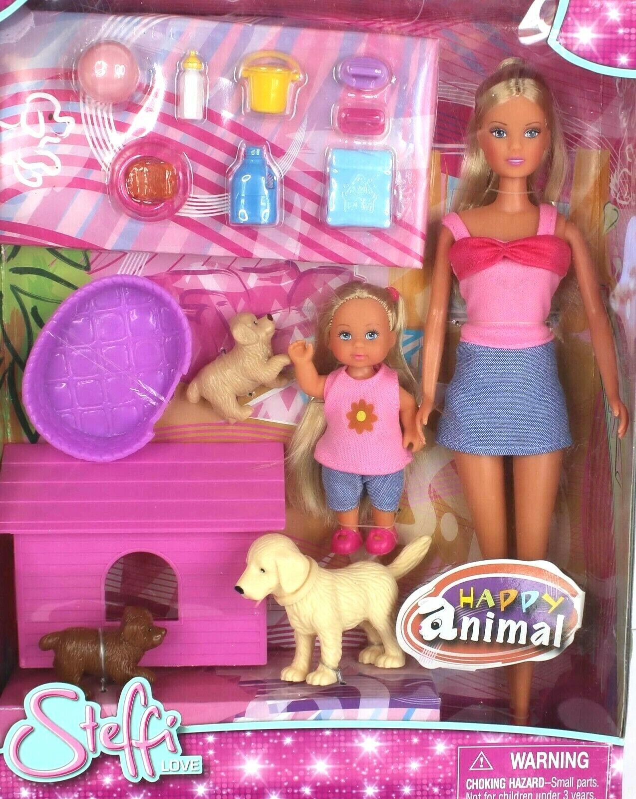 The animal lovers and best friends Evi and Steffi love taking care of dogs or rabbits and their babies. They put food into their bowls, bottle feed the small ones and use a ball or ball of wool to play with the animals. The animals can always find a place to relax, for example, the kennel, the scratching tree or the small slide for the rabbit hutch. Suitable for children aged 3 years and over.