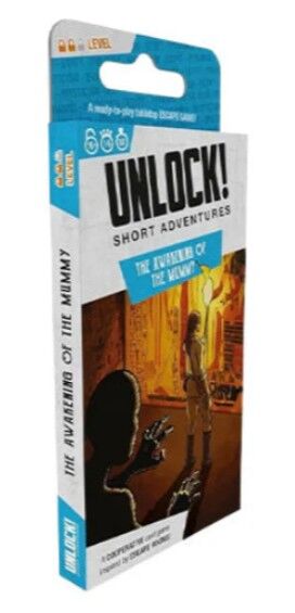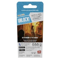 Unlock! Short adventures is a series of escape adventures for up to six players. With 30 to 45 minutes on the clock, players work through a deck of 30 cards as a team, searching for clues, combining objects, and solving puzzles. The free Unlock! companion app runs the timer while also providing clues, offering hints, and confirming successes. Once the team has reached a solution and entered the correct code into the app, they will escape and win the game!