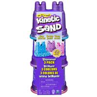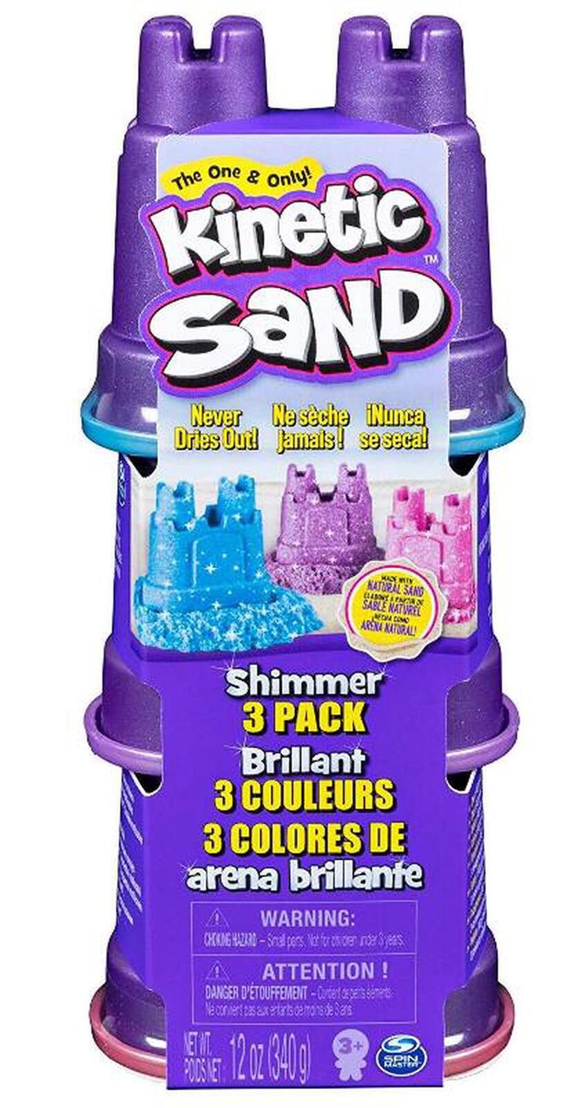 Create a glimmering, shimmering, dazzling creation with Kinetic Sand's multipack! For the first time ever, you can collect three different shimmering pastel shades of the magical moldable sand you can't put down! Each shimmery color comes in a castle-shaped container that doubles as a re-useable mold! Make a glitzy Kinetic creation, then build again and again! With sand that never dries out, the possibilities are endless! Free of gluten, casein and wheat, Kinetic Sand is fun and safe for everyone! Squish, shape and create!