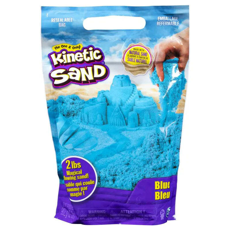 Mix, mold and create anything you can imagine with the Kinetic Sand 2lb color pack! Kinetic Sand is the original magical, moldable and mesmerizing sand. It flows through your hands and never dries out so you can play again and again. With 2lbs of colorful Kinetic Sand, you can squish it, mix it, cut it or mold it – the creative possibilities are endless! The unique Kinetic Sand formula makes it easy to shape and mold anything you can imagine. Available in four bright colour (purple, green and blue), the Kinetic Sand 2lb color pack comes in a convenient re-sealable bag, ideal for containment and storage. Create again and again and let Kinetic Sand flow through your hands – it’s so satisfying, you won’t be able to put it down! Kinetic Sand is made from natural sand and is wheat, gluten and casein free. Feel the fun with the Kinetic Sand 2lb color bag!