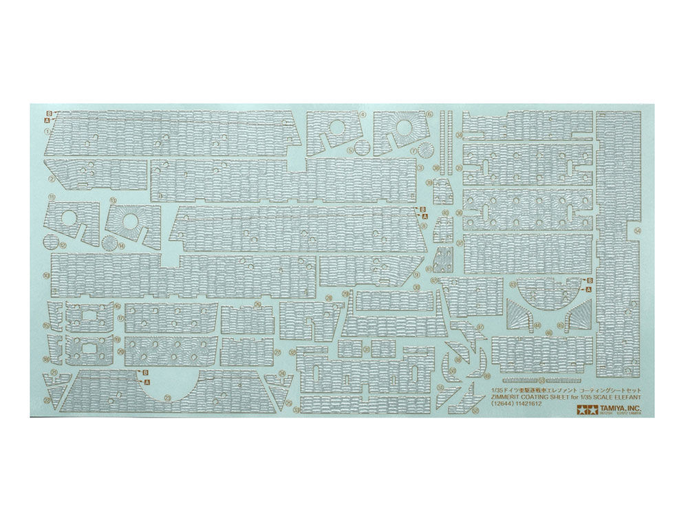 This set of dedicated sticker depictions of Zimmerit coating features realistic 3D surface patterns. Just cut them off of the sticker sheet and apply for an effective finish! They can be painted and are pre-cut to the correct shapes for your model. 2 different types are included, to match the 2 different marking options in the model kit.