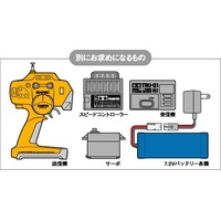 The perfect combination of simple assembly and tough exterior is what made the Grasshopper so special. Durable plastic body is fastened to bathtub resin monocoque chassis by screws, creating a solid frame that can absorb any type of rough handling. Off-road tracks can be tackled with ease thanks to coil spring dampers, and independent swing axle front and rigid axle rear suspension. Diff loaded sealed gearbox keeps out the dirt and stones for smooth driving and cornering. Paddle style rear tires and grooved front tires combine with 3-piece assembly type wheels for excellent grip performance on dirt tracks. Half-body driver figure adds that finishing touch to a fun off-road R/C car.