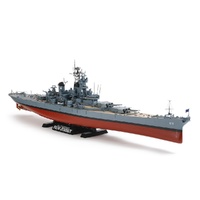 ●The smart hull, clipper-shaped bow, and bottom were adopted for passage through the Panama Canal. The four screws are also faithfully modeled. The screw shaft is made of stainless steel. - The Tomahawk launcher, Harpoon launcher, Vulcan Phalanx, etc. are also realistically reproduced. - Two SH-60B Seahawk helicopters are included. - 16-inch main gun shell Accessory parts for 2 missiles and 2 Tomahawk cruise missiles are also included. - Slide marks are used to mark the landing platform for the helicopter. - A display stand with a name plate with the ship's name in relief is available.