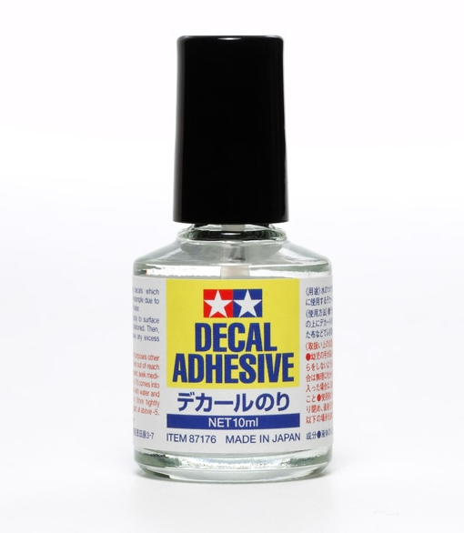 This is a ``glue'' that is effective when used on small decals or decals that have weakened due to being soaked in water for too long, to help the decals stick more securely. Use the brush attached to the cap to apply glue to the area where the decal will be applied, and wipe off any excess with a cloth dampened with water. Decals will be even easier to apply if you use MarkFit.