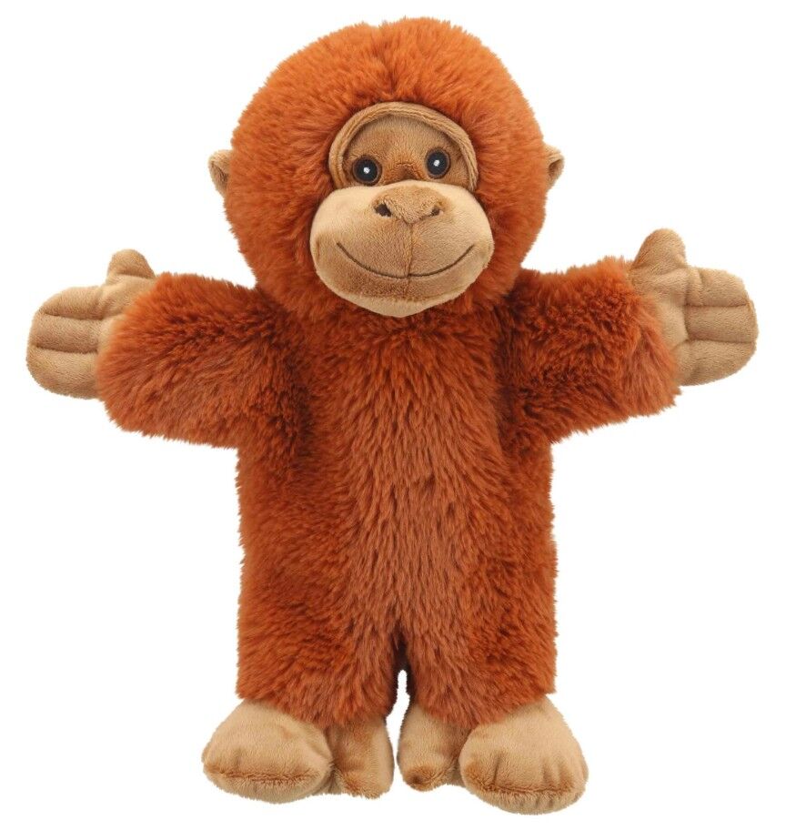 With its soft fur, expressive face, and long, gentle arms, this Orangutan puppet brings the wonder of the rainforest to playtime. Perfect for imaginative jungle adventures, this puppet fits most adult hands and is ideal for children, offering fun and learning opportunities for all ages. Made from recycled materials as part of our continued commitment to sustainability, this Orangutan is incredibly soft, boasting a high-quality finish. This eco collection perfectly complements our other puppets and soft toys with fantastic attention to detail. Part of our fantastic collection of ECO Walking Puppets, with many styles to collect from favourite farm, pet, and wildlife animals. Every single thing in each puppet, from the thread used to embroider the eyes to the stuffing making it extra cuddly, has been recycled and re-used - Pretty impressive, huh? Join us in our commitment to the environment as you embark on eco-friendly adventures with these charming Walking puppets: ‘Have a puppet - have fun - help save the planet’ Suitable from birth, recommended from 12 months and above. Average Size: 32 x 22 x 12 cm