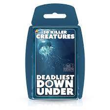 Australia is home to some of the deadliest creatures on our planet! Although spiders, snakes, sharks and crocodiles take the worst rap, it's a tremendous assortment of predators, including jellyfish, snails and octopus that have given Australia its formidable reputation. In Deadliest Down Under Top Trumps, you can discover all about these creatures whether it's the Australian Paralysis Tick that inhabits the east coast and is often encountered by humans, or the Great White Shark which lurks off our coasts you will find these and many more in this unique pack!