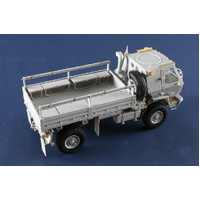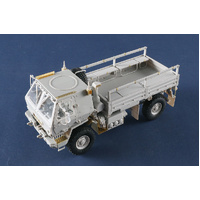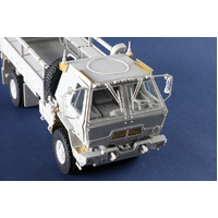 The M1078 Standard Cargo Truck is designed to transport cargo and soldiers. The M1078 has a payload capacity of 5,000 pounds and to facilitate loading/unloading, the bed side rails are mounted on hinges and can be lowered. The cargo bed can be equipped with an optional bench seat kit for transport of soldiers. The bench seats are constructed of a non-wood material and attach to the cargo bed side rails. The seats can be folded down and stowed when not in use. Soldiers are assisted climbing in and out of the cargo bed area with the aid of a ladder stowed on the vehicle when not in use. A canvas and bows kit is available to keep soldiers and cargo protected from the elements. The M1078 can be equipped with an optional self-recovery winch kit capable of fore and aft vehicle recovery operations. The winch has 308 feet of line capacity and 10,000 pounds bare.