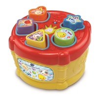 Drum and learn with the Sort & Discover Drum. Your little drummer will love dropping the 5 different shaped blocks into the correct opening to learn about shapes, numbers and animals. They can also tap on the lid to hear great drum sounds! Easily remove the lid to collect all of the shapes. Develop motor skills and imaginative play by tapping the drum and getting reactions! Inserting the shapes into the openings also strengthens fine motor skills and helps improve hand-eye coordination. With 3 happy sing-along songs, fun and engaging phrases and lots of jolly tunes, your child will always be entertained!