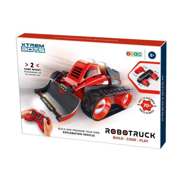 Have fun building and programming with Robotruck, a vehicle designed to help you to start learning about programming and technology in an easy, fun and creative way. With just a screwdriver and step-by-step instructions, children can enjoy the incredible experience of building their own remote controlled vehicle. Features: Programmable up to 50 actions 2 electric motors Electronic PCB 2 game modes: programming or remote control Notes & Tips: Suitable for ages 8yrs and older. Choking hazard: Contains small parts.