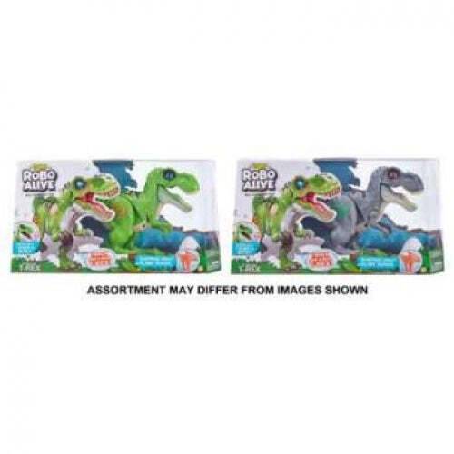 Beware! This Dino is really alive! ZURUs new Robo Alive Attacking T-Rex stomps and walks with real Dinosaur movement. It even bites and roars and has super realistic eyes that look alive! Theres new glow in the dark Dino Slime to discover inside the Dino Egg! So watch out, this is no ordinary pet and beware of the Surprise Dino Sime inside! Its more than alive Its Robo Alive!
